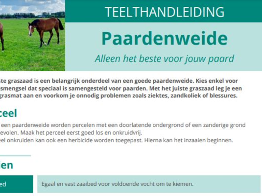 Het juiste graszaad is een belangrijk onderdeel aan een goede grasmat. Kies voor een grasmengsel dat speciaal is samengesteld voor paarden. Met het juiste graszaad leg je een betere grasmat voor je paarden aan. Hiermee voorkom je onnodig veel problemen zoals opnieuw inzaaien, maar bijvoorbeeld ook problemen van je paard zoals zandkoliek.