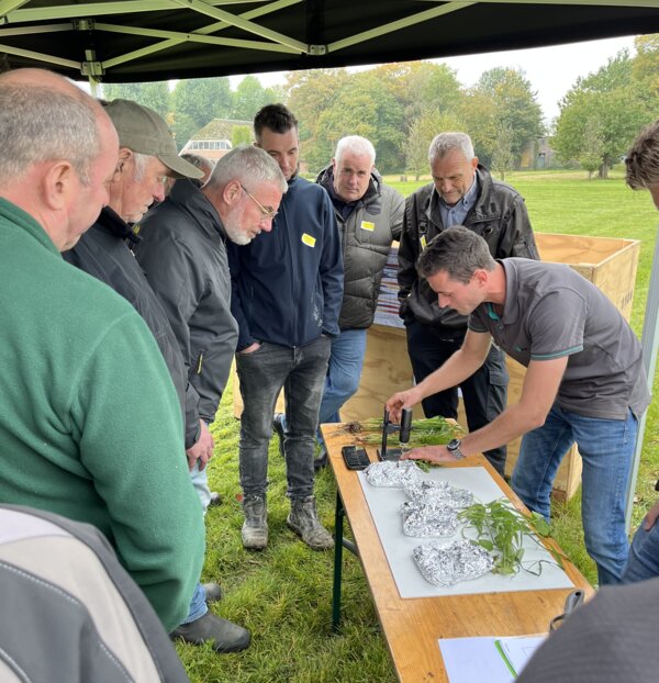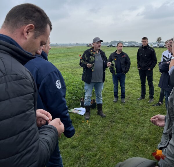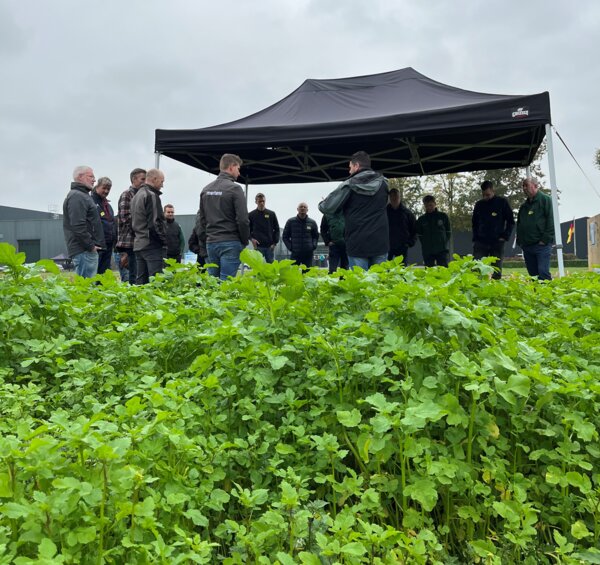 Tako van den Hul en Rowan Timmer bespraken de nieuwste ontwikkelingen in TerraLife groenbemesters bij DSV zaden. De allernieuwste mengsels waren ingezaaid op het innovatieveld waarbij de componenten, toepassing en teelt werden toegelicht. Ook het actuele onderwerp companion cropping, het gelijktijdig telen van twee gewassen, kwam aan bod. DSV veredelt nieuwe gewassen voor in de TerraLife mengsels zoals de Melenka veldboon, welke eveneens ingezaaid was. Ook de monocomponenten van DSV zoals Trident bladrammenas, Proud Mary tagetes en Japanse haver kregen aandacht en de vorig jaar geïntroduceerde winterharde TerraLife CoolSeason.