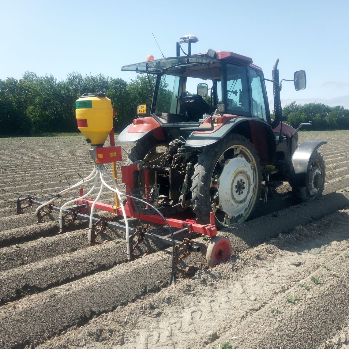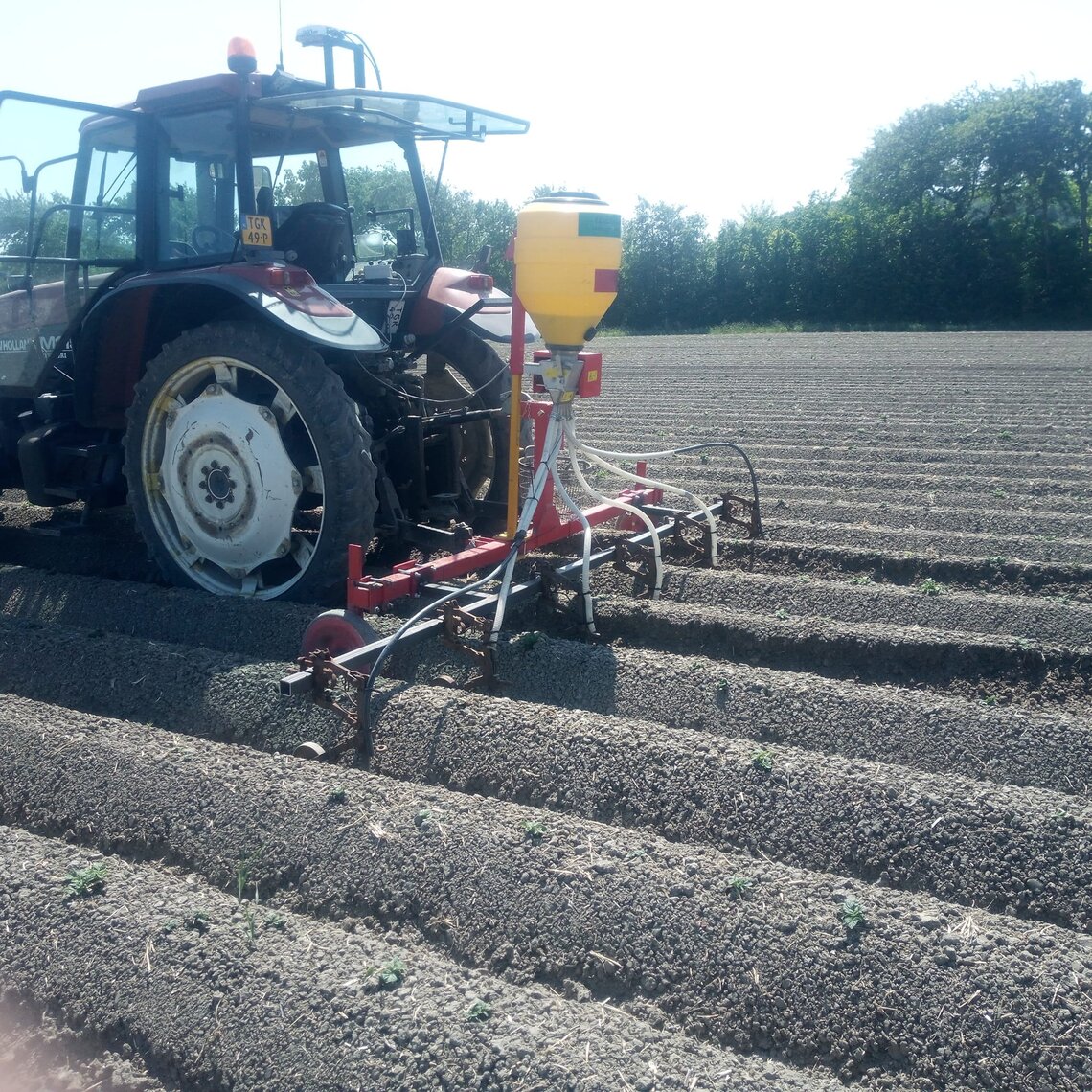 Landbouwbedrijf Innerduyn uit Biggekerke doet dit jaar ervaring op met de tussenzaai van TerraLife® Solanum Pro in aardappelen. Het zaad is in de grond gebracht met een granulaatstrooier die door Peter Geerse is opgebouwd op een raamwerk. Bij het zaaien was vocht aanwezig maar door een lange periode van droogte die volgde was de opkomst van de groenbemester traag. Er is na opkomst van de aardappelen geen correctiebespuiting tegen onkruid toegepast. Er is uitgezaaid in Fontana aardappelen maar ook op een ander moment in Innovators.