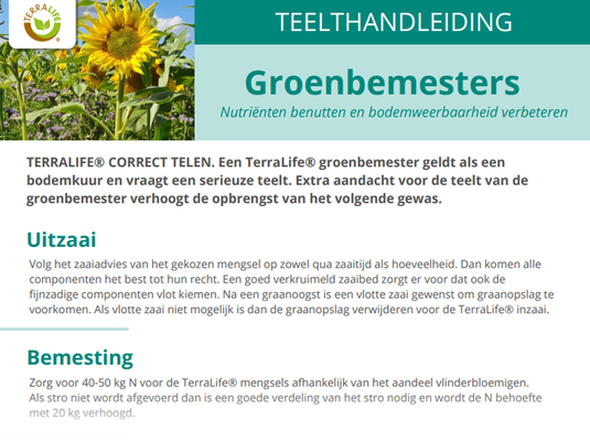 Een TerraLife® groenbemester geldt als een bodemkuur en vraagt een serieuze teelt. Extra aandacht voor de teelt van de groenbemester verhoogt de opbrengst van het volgende gewas.