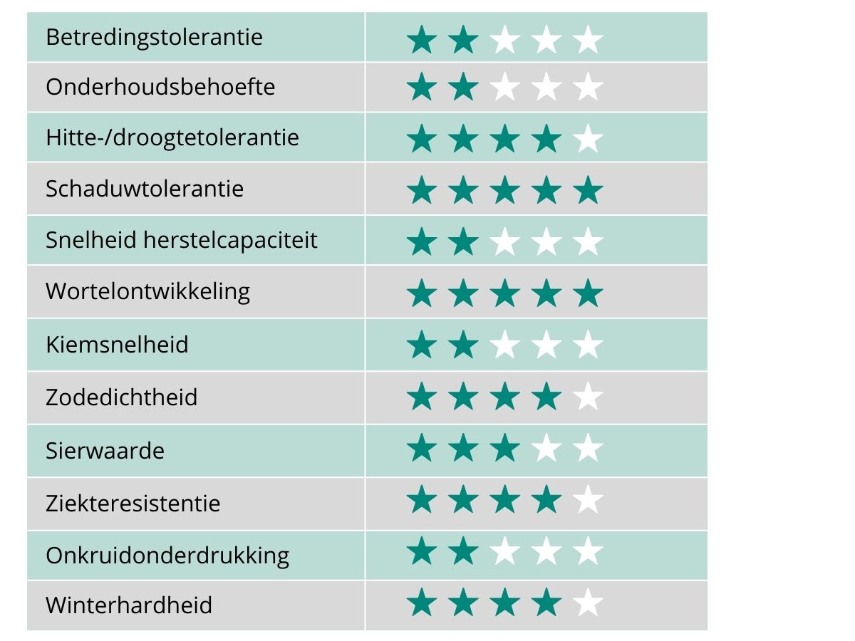 EUROGRASS Silhouette is een uitgebalanceerd mengsel dat prima gedijt in schaduwrijke omgevingen. Met componenten zoals veldbeemd, rietzwenk en deschampsia biedt Silhouette een sterke en gevarieeerde beworteling, wat resulteert in een gezonde grasmat bovengronds, ongeacht de omstandigheden. Deschampsia samen met rietzwenk zijn ook een onaantrekkelijke grasplant voor vraat van o.a. ganzen. Kies voor EUROGRASS Silhouette en creëer een groen paradijs, zelfs in de moeilijkste omgevingen.