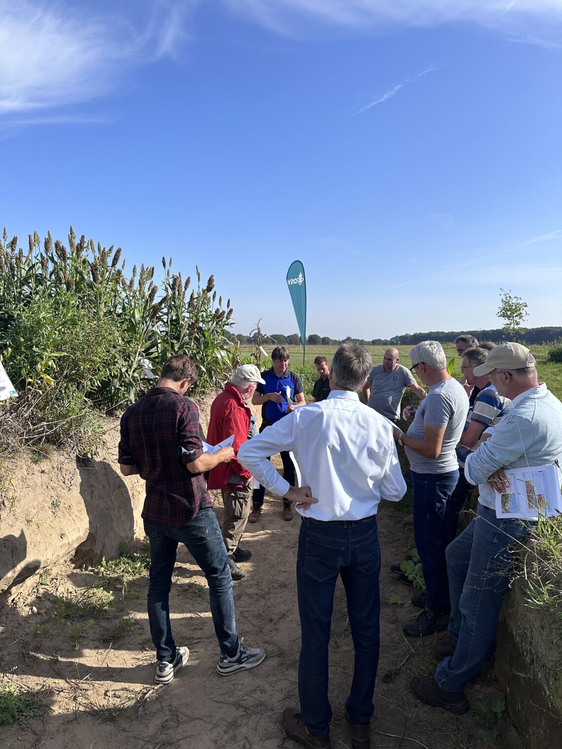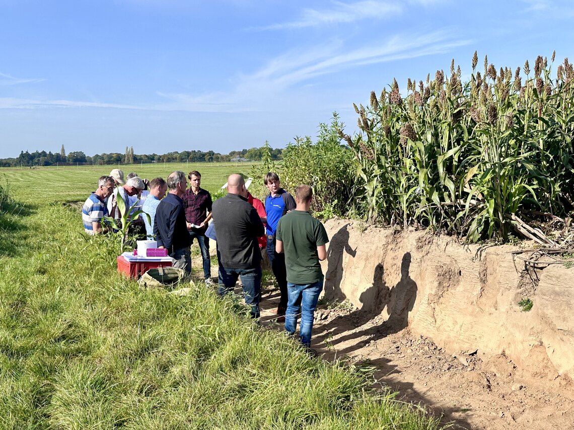 Op de demovelden volgden workshops die meer informatie uit de praktijk lieten zien. Karst Brolsma van Eurofins Agro liet in een profielkuil door middel van een praktische analyse zien welke organismen er in de bodem leven en hoe je het microbioom kan meten. Dit kan door middel van de Bodemlevenmonitor. Daarbij had hij eerder bodemmonsters genomen van de diverse demovelden van DSV zaden van groenbemestermengsels, sorghum en soortenrijk grasland. Hij legde de uitkomsten van deze metingen uit over het gemiddelde organische stof, microbiële massa, biomassa en schimmel-/bacterieratio.