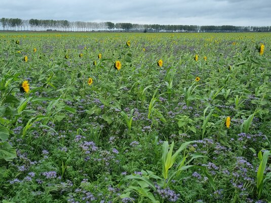 Laurijsse over zijn ervaring met SolaRigol: ‘Het is een prachtige groenbemester met verschillende plantensoorten. We hebben het mengsel vrij laat gezaaid, pas rond 15 september, maar alle soorten in het mengsel kwamen goed op. De teelt ging prima, totdat het ging vriezen in december, toen is hij vrij snel kapotgevroren. Het mengsel had van ons best groener mogen staan (tot 1 maart). Wij laten het perceel altijd groen liggen tot het moment dat wij de aardappels gaan poten. Omdat het zo’n extreem nat voorjaar was konden we de aardappels pas begin juni poten. Pas enkele dagen voor het poten bewerken wij dan de bodem. Wat wel opviel was dat we zagen dat enkele soorten in het mengsel uiteindelijk weer uit begonnen te lopen en dat dus toch weer groen werd.’