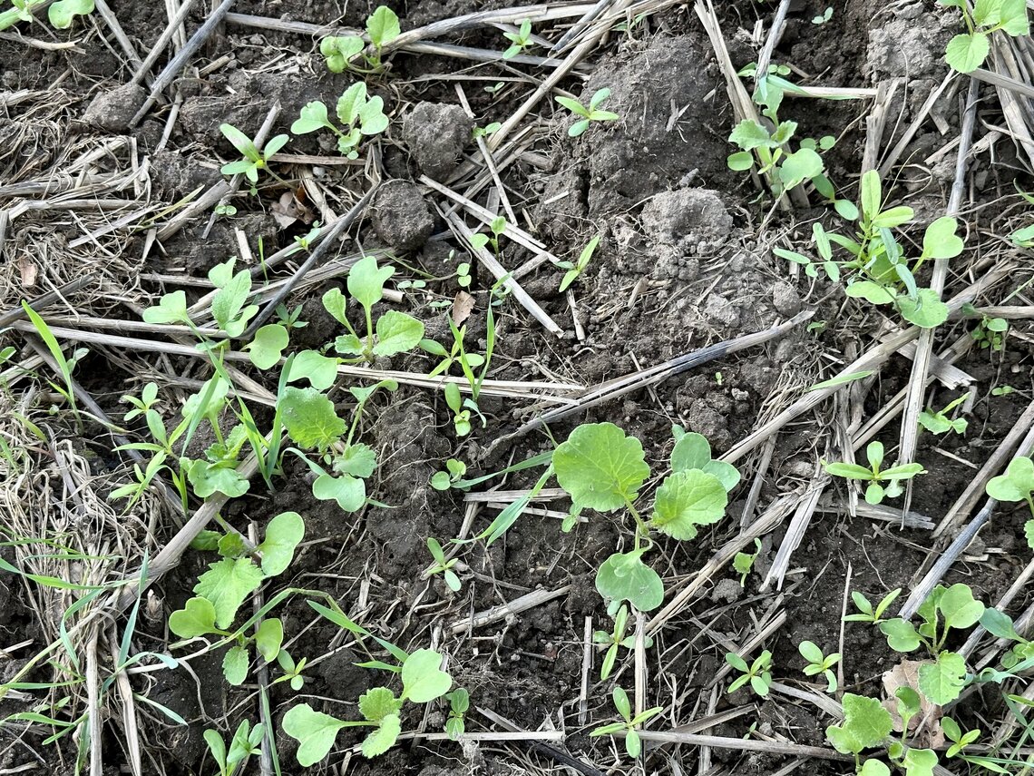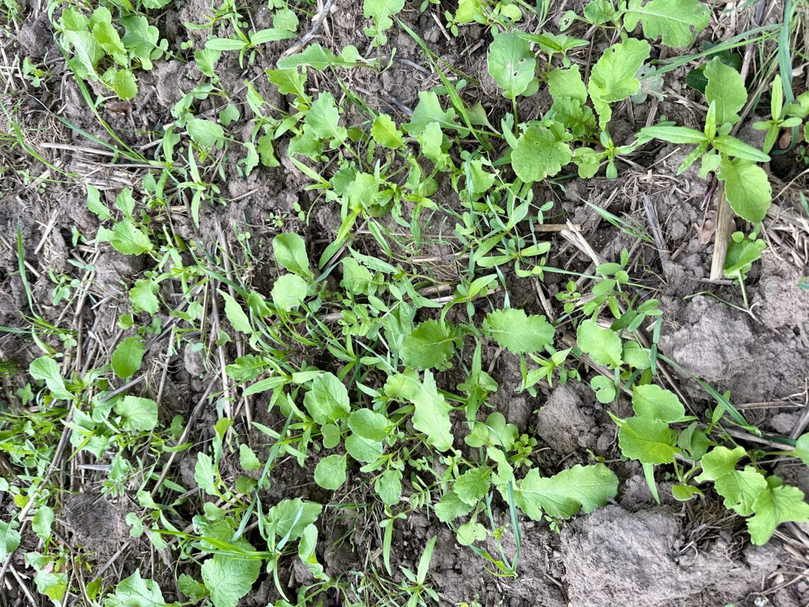 7 weken na inzaai | Het veld is mooi volgegroeid en de kleine plantjes zijn al behoorlijke planten geworden. September was nog een warme maand, de temperaturen in oktober beginnen iets te dalen maar zijn momenteel nog steeds hoger dan jaargemiddelden.