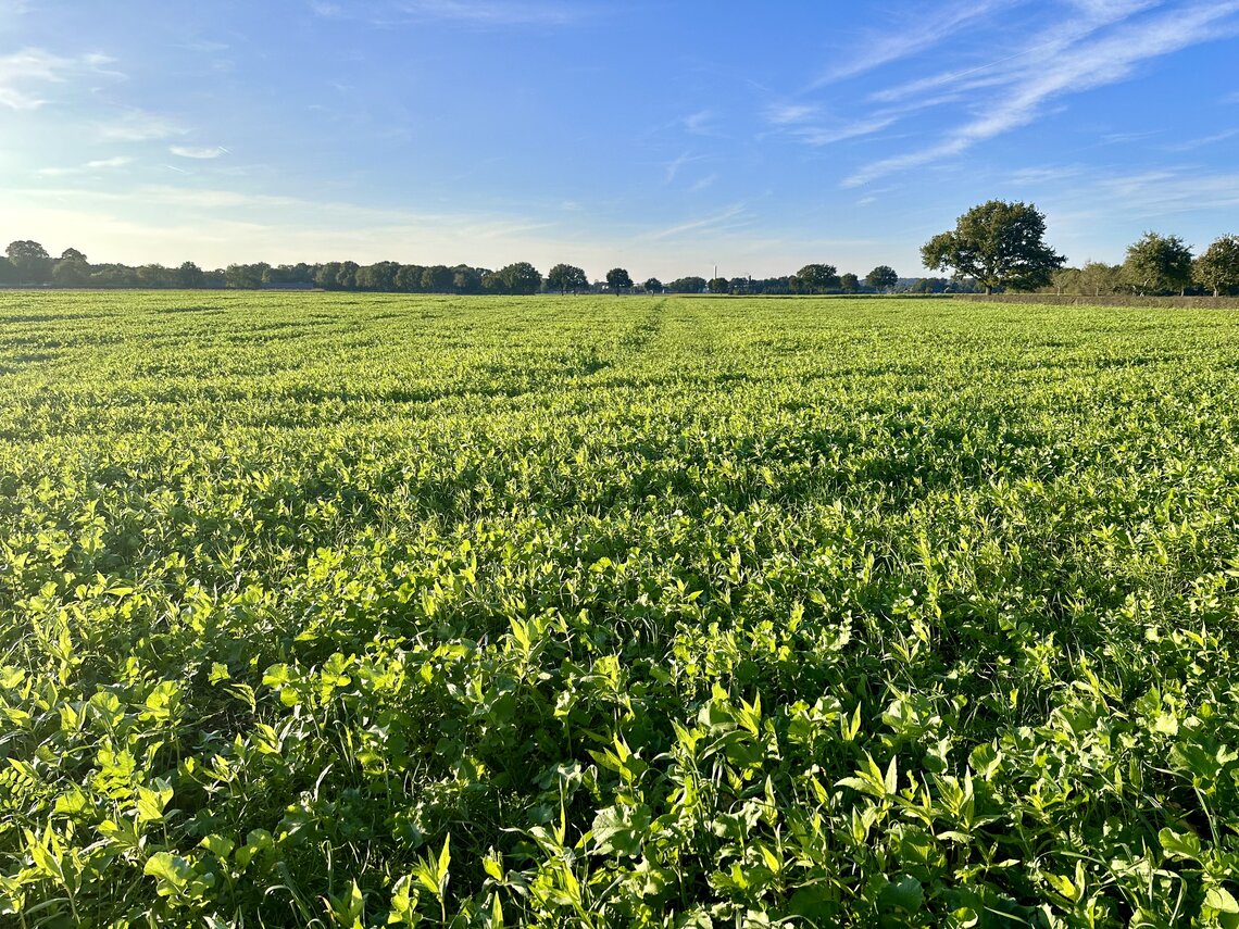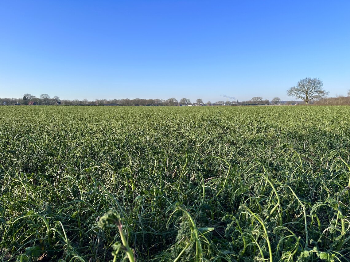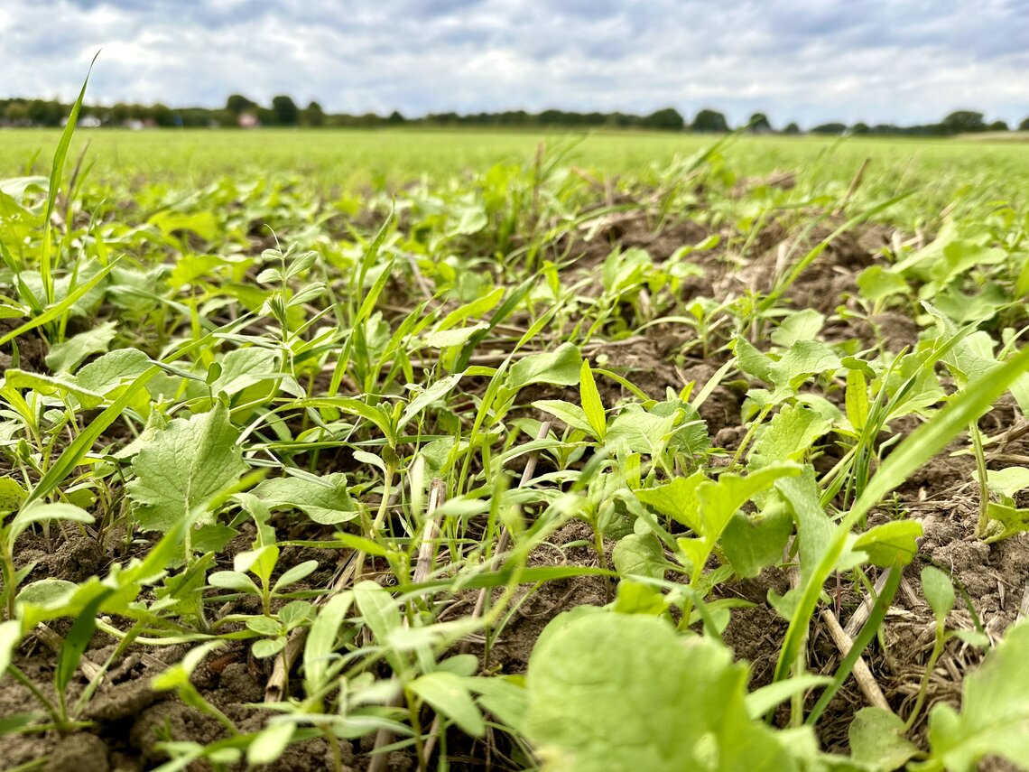 4 weken na inzaai | Dankzij de warme weersomstandigheden groeit de groenbemester prima door en trekt het veld al aardig dicht.