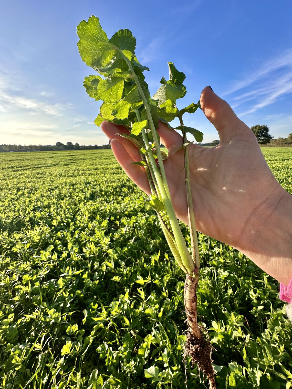 Voor dit perceel is gekozen voor het mengsel TerraLife® Betasola vanwege uitgekiende samenstelling voor bodemverbetering. Het mengsel bevat o.a. Japanse haver, 3 soorten bladrammenas en zomerwikke en is speciaal geschikt voor een bouwplan met aardappelen en bieten. Het mengsel zal zich hopelijk vlot ontwikkelen en zorgt voor een stimulering van het bodemleven. Na deze teelt zal het veld in topconditie zijn voor de volgende hoofdteelt: aardappelen.