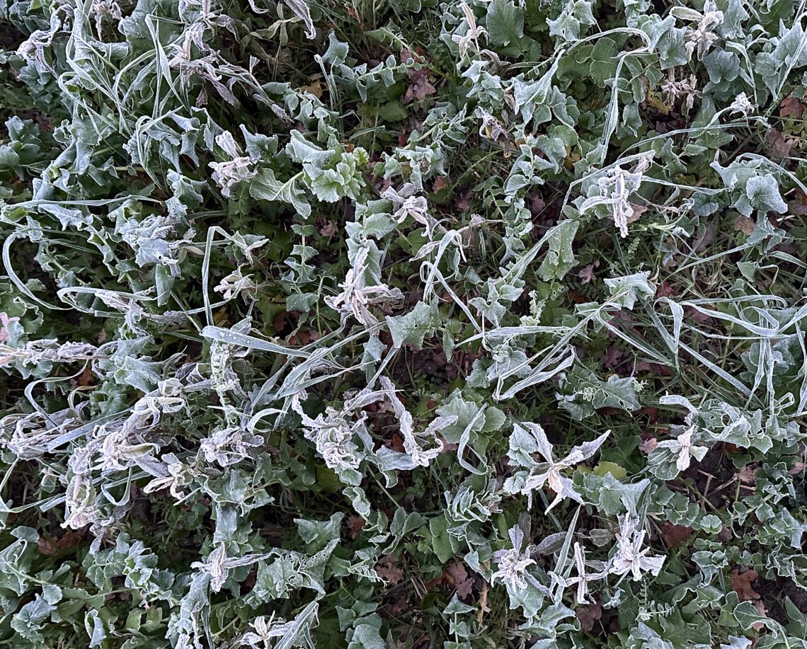 Update van onze BetaSola groenmebester. Er was een extreem lange, natte periode. November is een van de de natste maanden sinds het begin van de metingen in 1901, waarbij er op 26 dagen neerslag viel (bron: KNMI), en het was ook nog uitzonderlijk warm qua temperatuur. Deze week (week 48) was er dan toch de eerste echte vorst, zo'n -2 graden. In de vroege ochtend van 30 november leverde dat mooie plaatjes op aan de Horsestraat met het rijp van de vorst op de planten: