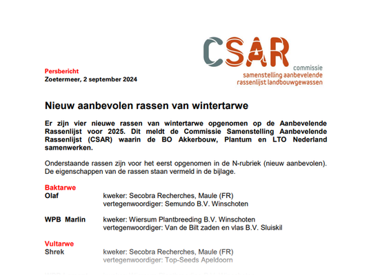 In Nederland meldt DSV zaden Nederland wintertarwerassen aan voor de Nederlandse rassenlijst.